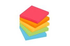 Suas folhas são reposicionáveis, pois possuem adesivo de qualidade 3M que permite que essas sejam retiradas e recolocadas sem danificar papéis ou outras superfícies. Não deixa resíduos do adesivo.
