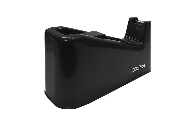 Os suportes para fitas Go Office é ideal para uso em escritórios e lares, sua base emborrachada evita arranhões em superfície de contato. Para fitas com largura de até 24mm. Produzido em corpo plástico, possui lâmina de corte em aço inox. Especificações: Medidas: 215 x 85 x 104mm (C x L x A) Peso: 1,346 (Kg) Cor: Preta