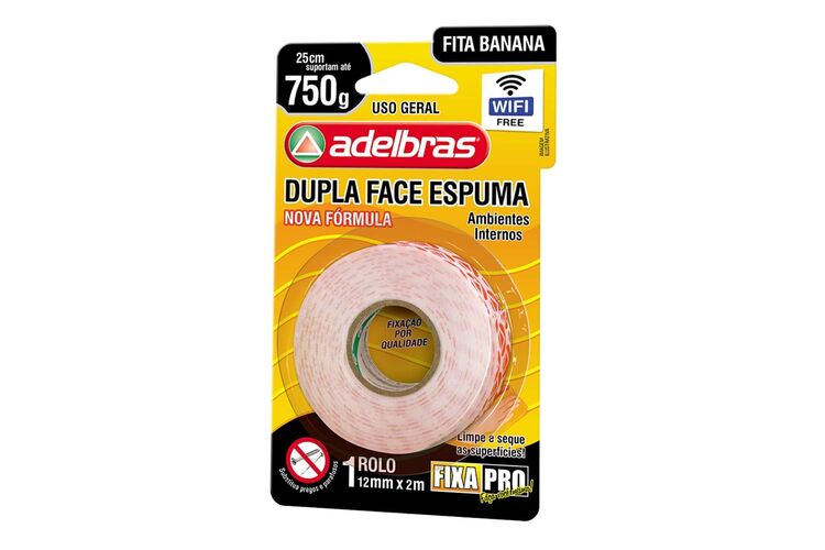 Fita Dupla Face Espuma 12 mm x 2 metros Fixa Pro | Adelbrás