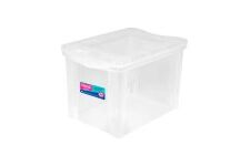 Caixas organizadoras Ordene para manter objetos organizados, armazenados com segurança e o ambiente decorado. Além de super resistentes, práticas e fáceis de limpar. Especificações Cor Cristal: Super resistente: Lavável: Com tampa: Dimensões: A - 42,5cm C - 30,7cm L - 30,5cm