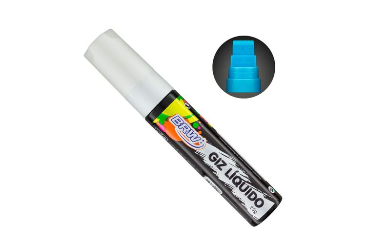 Transforme qualquer superfície lisa em um espaço criativo com o Giz Líquido BRW! Ideal para quadros brancos, lousas, vidros, plásticos e muito mais, este marcador multiuso à base de água possui uma ponta chanfrada de 15mm, perfeita para traços precisos e destacados. A tinta é removível com água, garantindo fácil limpeza em superfícies lisas.Perfeito para uso escolar, profissional ou decorativo.