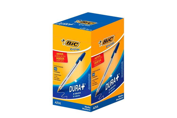 A clássica esferográfica, líder mundial e a favorita em milhões de lares, escritórios e escolas do mundo todo. Corpo hexagonal transparente, tinta com fórmula exclusiva esfera de tungstênio, tampa ventilada. Cor: Azul. Referência: 835205 Ponta: Média 1,0mm. Embalagem: Caixa com 50 unidades. Informações constantes do selo, conforme Portaria Inmetro Nº 481/2010: Segurança, Compulsório, Registro 003223/2012, SGS0040, INMETRO.