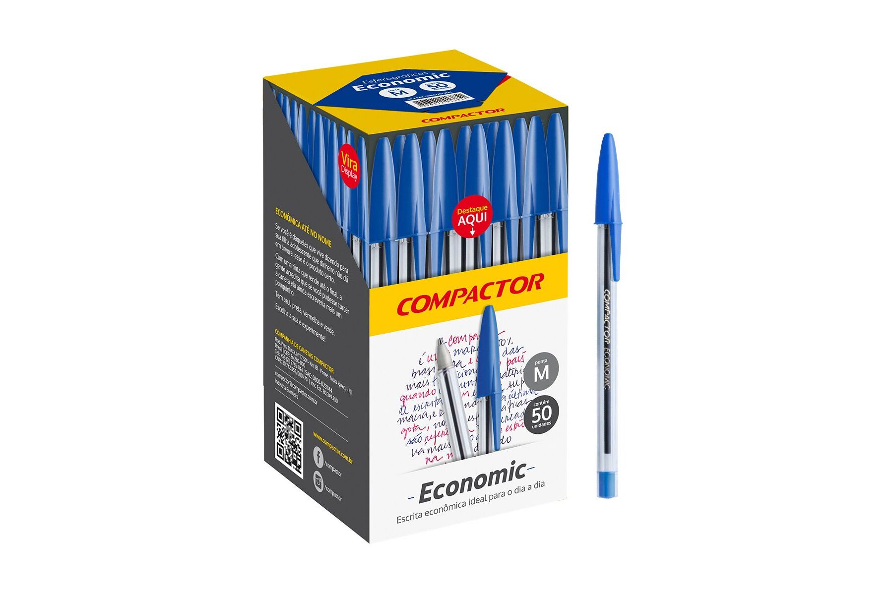 Caneta Esferográfica Compactor Economic Azul Caixa com 50 unidades
