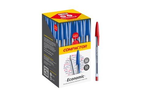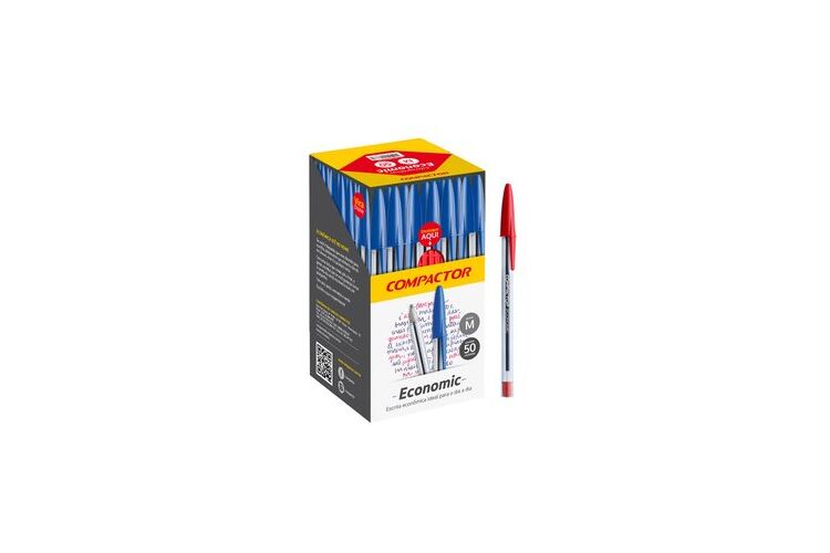 Caneta Esferográfica Compactor Economic Vermelha Caixa com 50 unidades