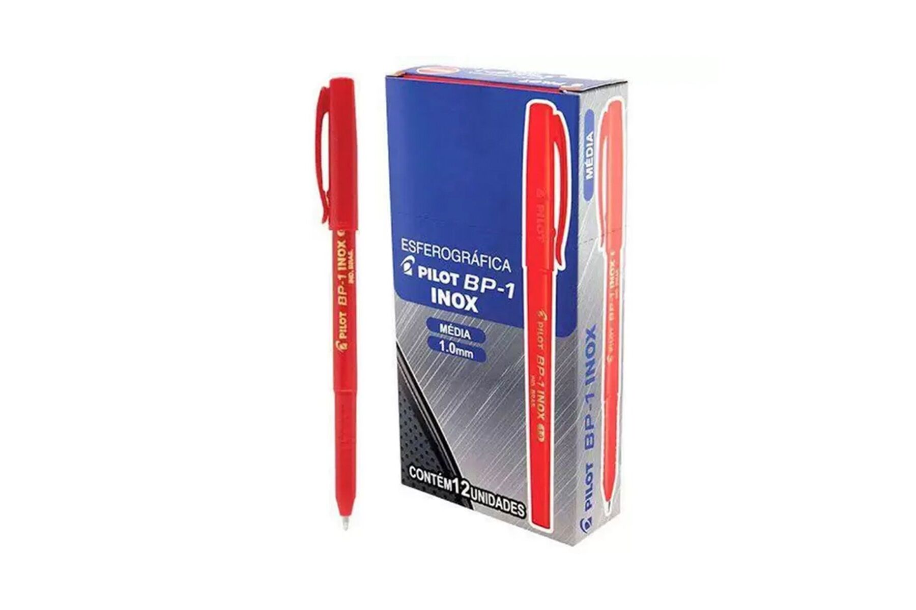 Caneta Esferográfica Pilot BP-1 Inox 1.0 Vermelha