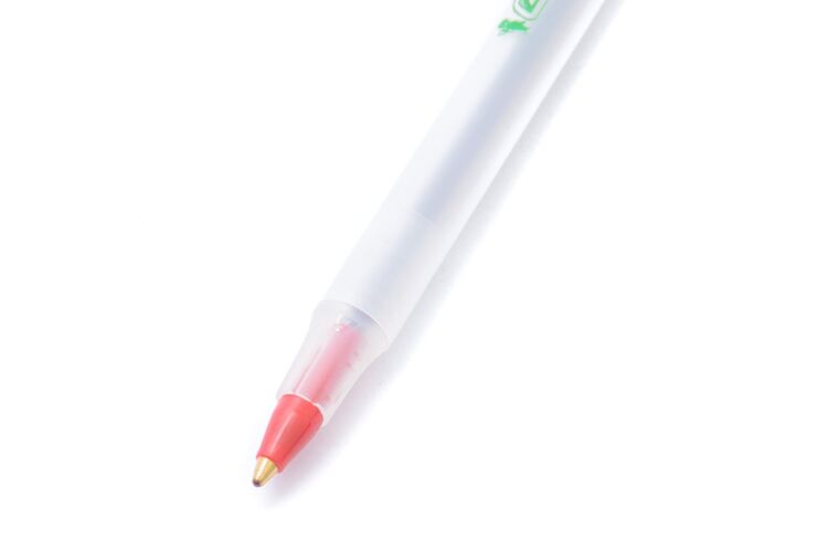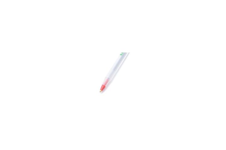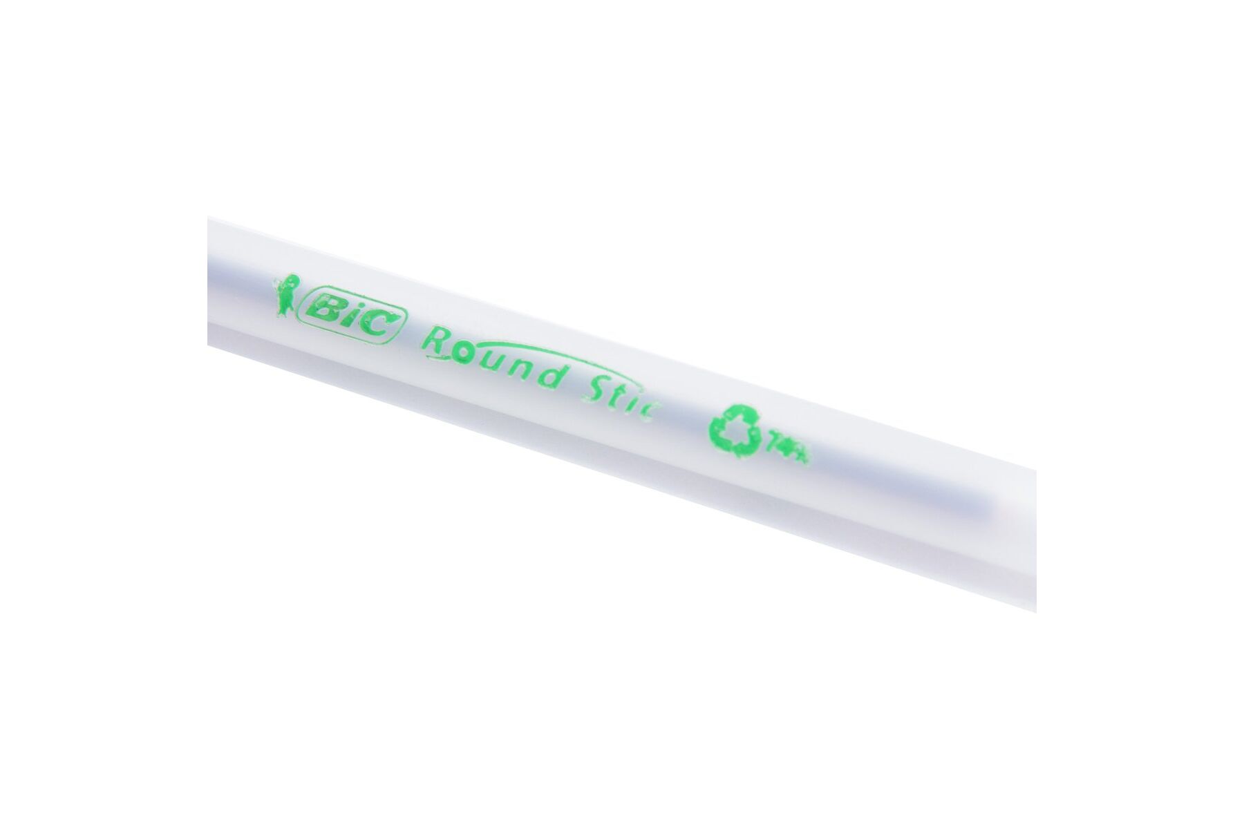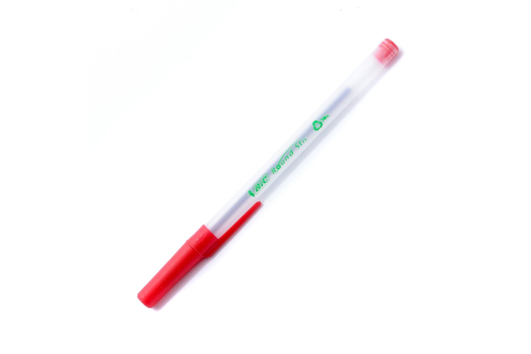 Caneta esferográfica Ecolutions Round Stic, produzida com 74% de material reciclado pré consumo. Corpo redondo e translúcido. Marca: BIC. Cor: Vermelha. Ponta: Média 1,0mm Informações constantes do selo, conforme Portaria Inmetro Nº 481/2010: Segurança, Compulsório, Registro 003227/2012, SGS0040, INMETRO.