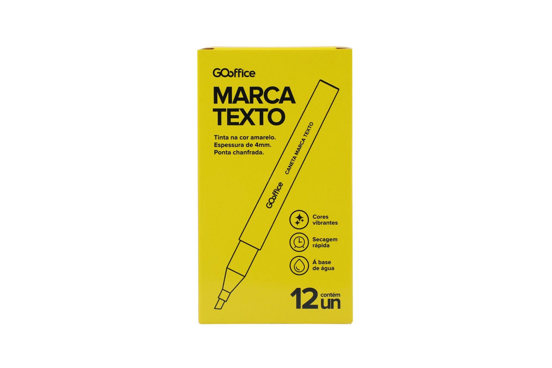 A caneta marca texto Go Office é ideal para quem busca qualidade e alta durabilidade.Possui cores vibrantes e intensas, ponta chanfrada que permite diversos tipos de traço (fino para sublinhar e grosso para destacar). Com ponta resistente, possibilita uma escrita firme, sem afundamento da ponta. - Disponível nas cores: Amarelo, Azul, Laranja, Rosa e Verde - Tinta à base de água - Ponta chanfrada, 4mm - Não tóxico - Tamanho: 13.5*1.1CM REGISTRO INMETRO 001 541/2023