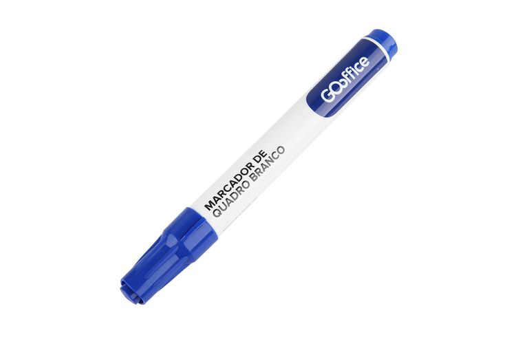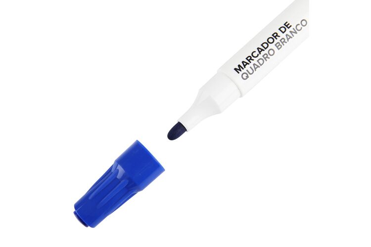 Marcador de Quadro Branco • Cor Azul • Ponta redonda 3mm • Tamanho: 14,6 x 1,6cm • Facilmente apagável • Tinta de alta qualidade e atóxica, com secagem rápida • Cores vivas
