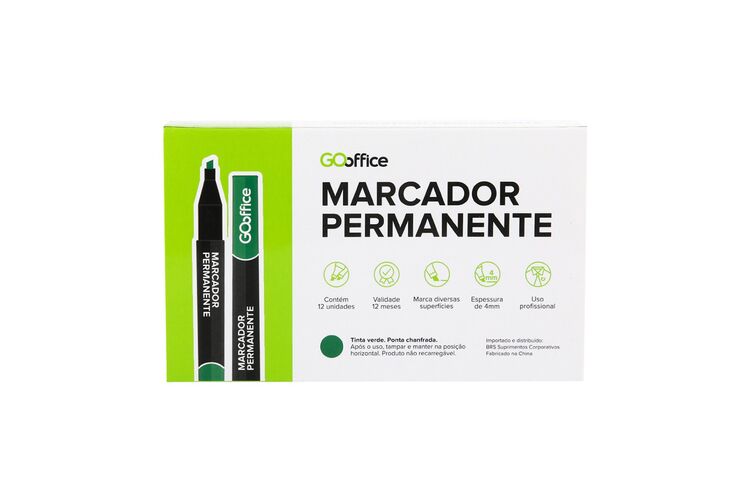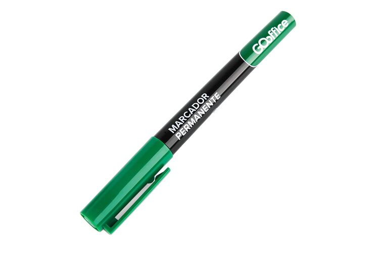 Marcador Permanente • Cor: Verde • Ponta chanfrada: 4mm • Tamanho: 13,5 x 1,1cm • Ponta: Fibra