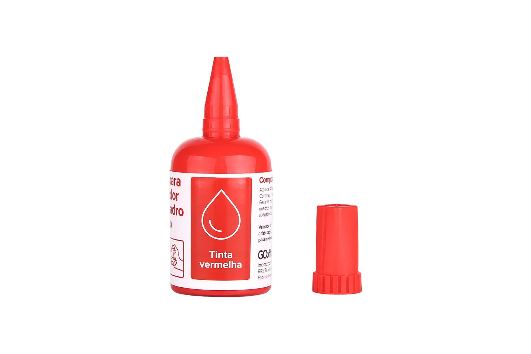 Tinta para Marcador de Quadro Branco Go Office Vermelha 20ml Descrição: Cor: vermelha Quantidade: 20ml