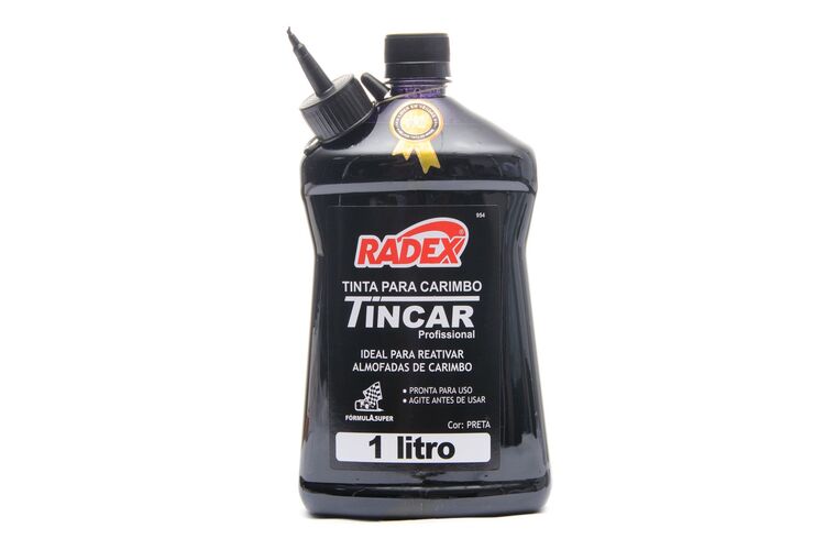 Ideal para reativar todos os modelos de carimbos auto entintados, cada vez mais utilizados no dia-a-dia: Reativa o funcionamento com algumas gotas. Tinta para Carimbo Radex, sem óleo, reativa a todos os tipos de almofadas. Especificações Técnicas: Composição: Frasco: Poliestireno injetado. Tinta: Água, Resina, Corante e Aditivos Cor: Preta Contém: 1 litro