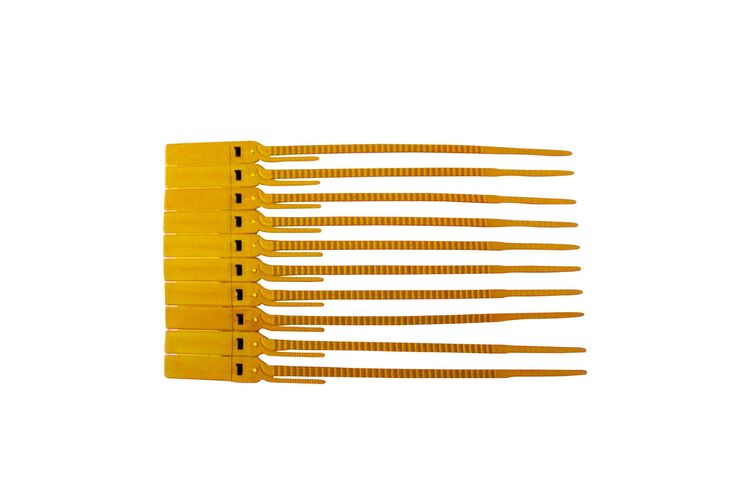 O modelo 16,8 cm em polipropileno é um lacre para uso indicativo. A sua utilização recomendada é para fechamentos que não demandem grandes comprimentos de cabo, e também não sofra forte tração, como por exemplo: Malotes, Uso hospitalar (Carro de Parada Cardíaca), identificação de cabos, controle de autenticidade de mercadorias. Também pode ser utilizado na silvicultura para a identificação numérica ou de logomarca na produção de mudas. Modelo tipo Escada, dupla trava - Com sistema abre fácil (AF), no qual não é preciso utilização de outra ferramenta para que o dispositivo seja rompido. Cor: Amarelo Dimensões: Comprimento Total do Lacre: 168mm Dimensões do Cabo 3,35x2,16mm Comprimento Total do Cabo: 113mm Largura da Cabeça 15x52mm Resistência Mínima a Tração: 10 Kg/f Fechamento Mínimo 40mm Fechamento Máximo 12,59mm Processo de Gravação Possíveis: Hot Stamp