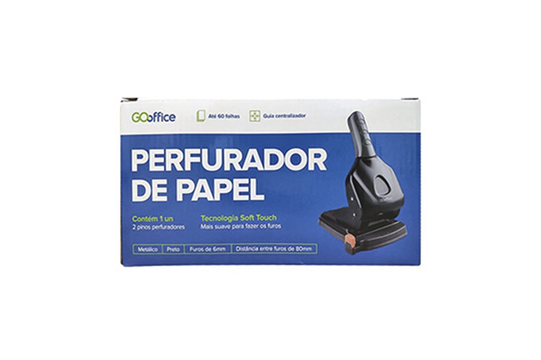 Perfurador de Papel Metálico 2 Furos 60 folhas | Go Office