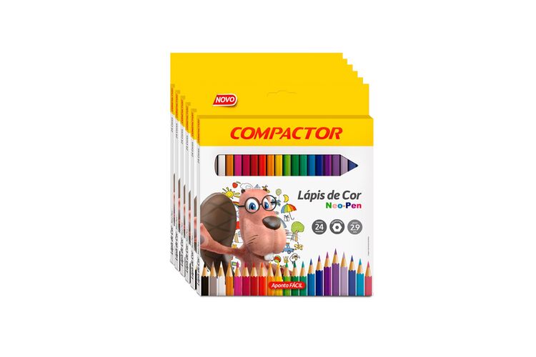 Lápis de Cor 24 Cores Sextavado | Compactor Neo Pen