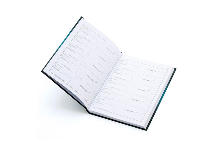 Livro Protocolo de correspondência 1/4 - 100 folhas - Capa em papelão: - Medidas: 154 x 216 mm: - Gramatura: 0,70g, - Cor: Preto e azul. - Ref.: 5887-5