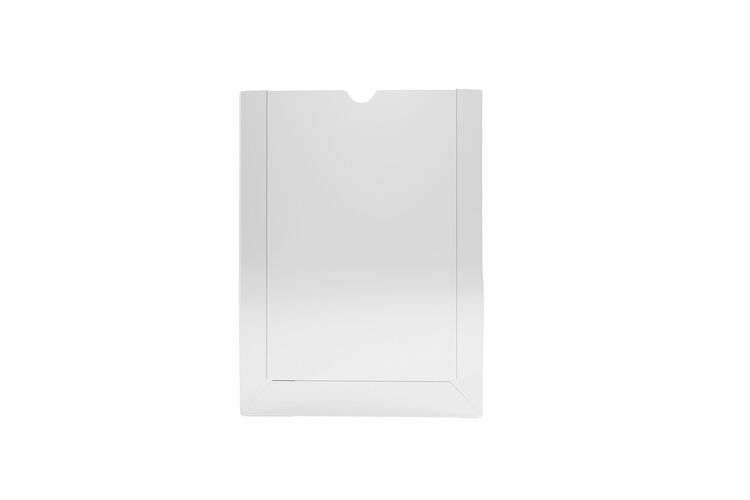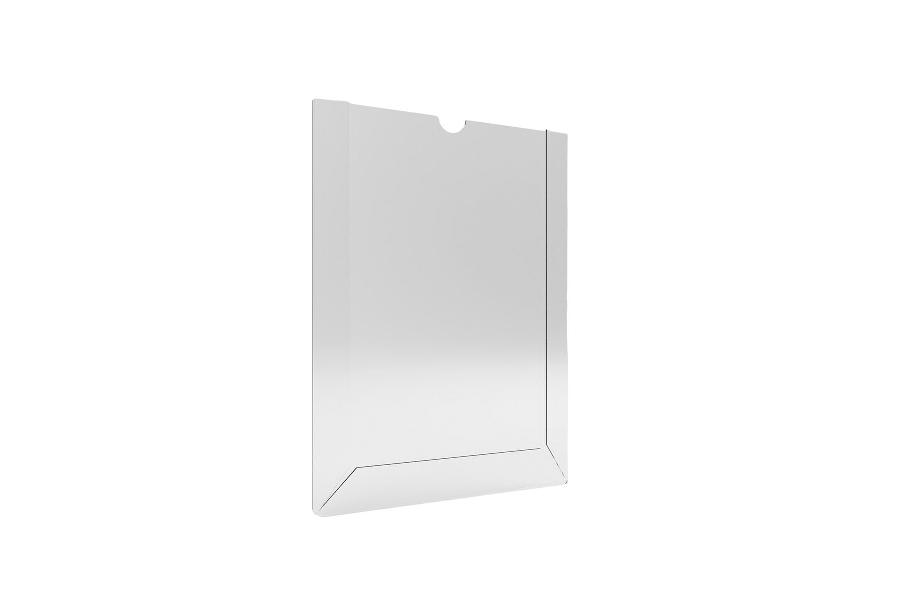 O display em acrílico possui um recorte em meia lua que facilita a reposição dos informativos, avisos, flyers e documentos expostos.