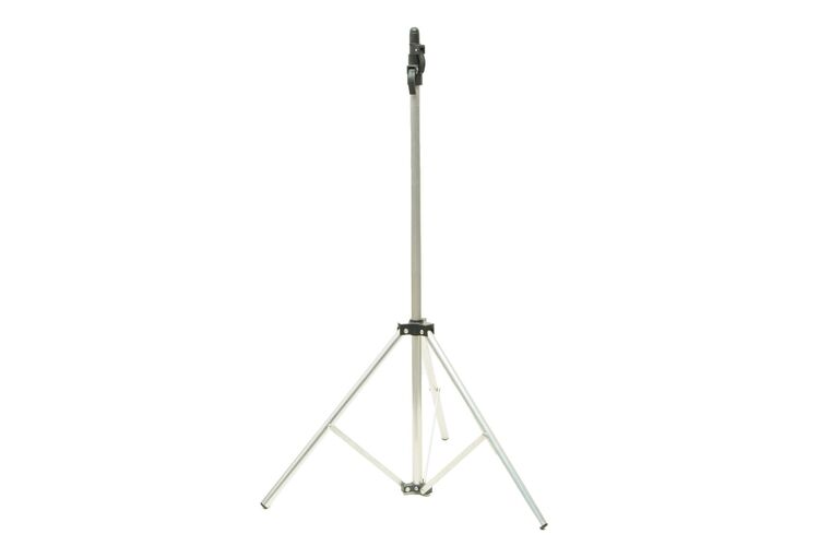 CARACTERÍSTICAS: Porta banner tripé, regulável até 2,5 metros de altura, em alumínio com acabamento plástico em cor preta.APLICAÇÃO: Utilizado para esposição de banner. EMBALAGEM: Caixa papelão com 1 unidade.