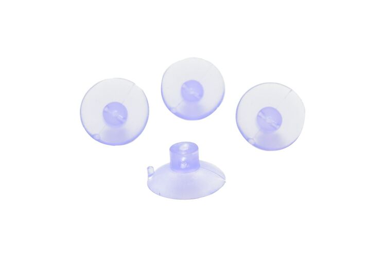 Ventosa Plastico para Banner 40mm, para uso criativo,para fixação de artesanatos,enfeites, materiais de propaganda, placas de sinalização, banners, cartazes, mapas, apóia mesas de vidro, etc. Projeto da haste central:Possui orifício transversal para passagem de fios, arames ou cordões para pendurar enfeites e utilidades. Pode ser encaixada em tubos e perfis para apoio de tampos de vidros de mesas e consoles. Dimensões: 4x4x1cm. O peso que cada ventosa suporta é 500g.