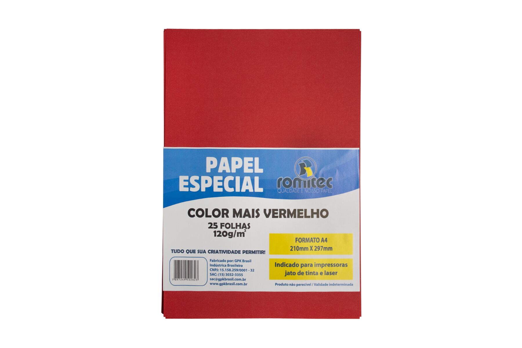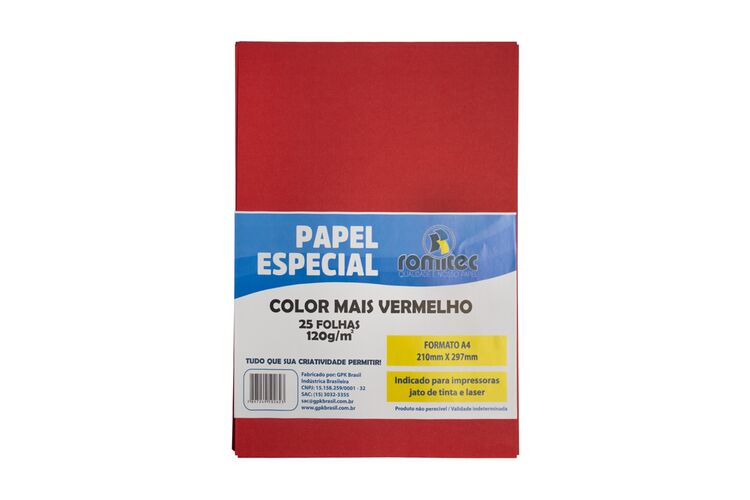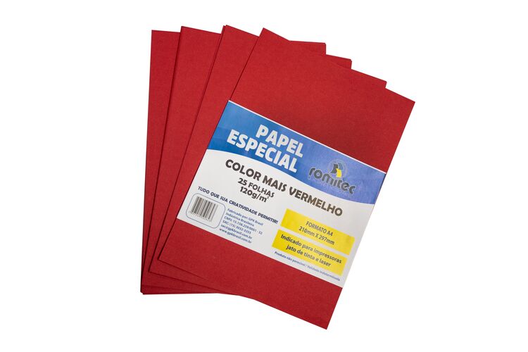 Formato: A4 - 210X297mm- Gramatura: 120 g/m2 Cor: Vermelho