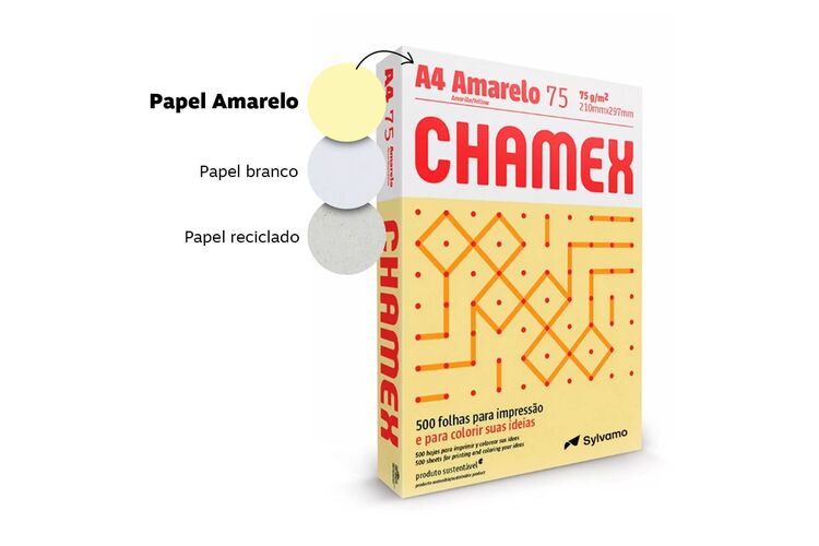 Papel Chamex A4 210x297mm Amarelo 75g PCT 500fls