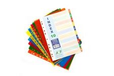 Separador para fichário Universal, com 10 divisões coloridas para organização de documentos, matérias, etc.