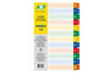 Separador para fichário Universal, com 12 divisões coloridas para organização de documentos, matérias, etc. Especificações: Dimensões: 224mm x 297mm Cor: Colorido. Referência: 855. Composição: PP (Polipropileno)