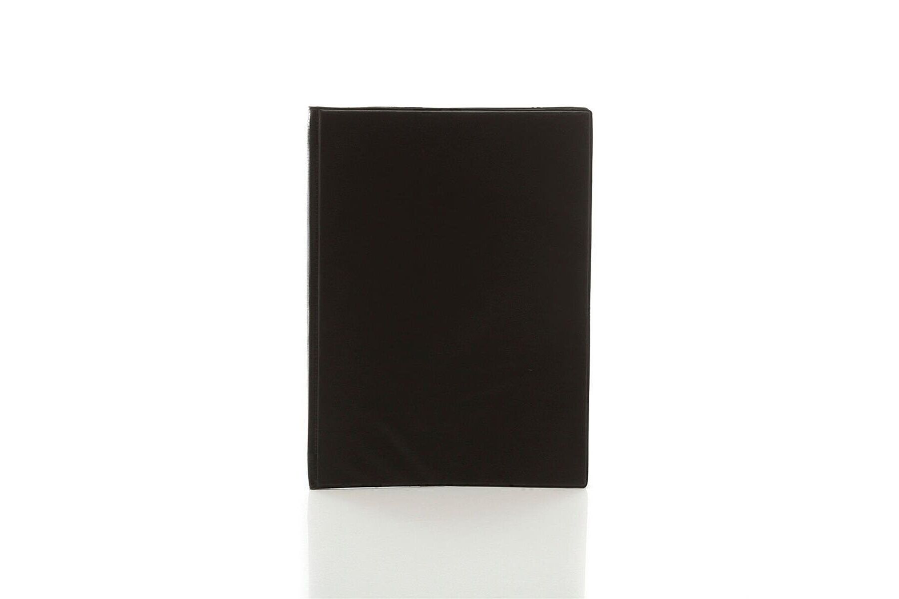 As pastas do tipo catálogo memorando são indicadas para guardar documentos que não possam sofrer rasuras. Ela funciona como uma espécie de caderno onde as folhas são colocadas frente e verso em cada página plástica. Também indicado para proteger produtos que não podem entrar em contato com umidade ou poeira. Possui 2 colchetes e visor. Contém 10 sacos plásticos. Marca: ACP Referência: 101.PT Cor: Preto Tamanho: 185mmx255mmx10mm Espessura em Micras do saco plástico: 0,10m Composição: PVC, PE, Papelão, Metal.