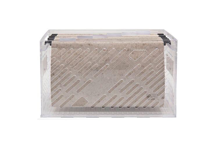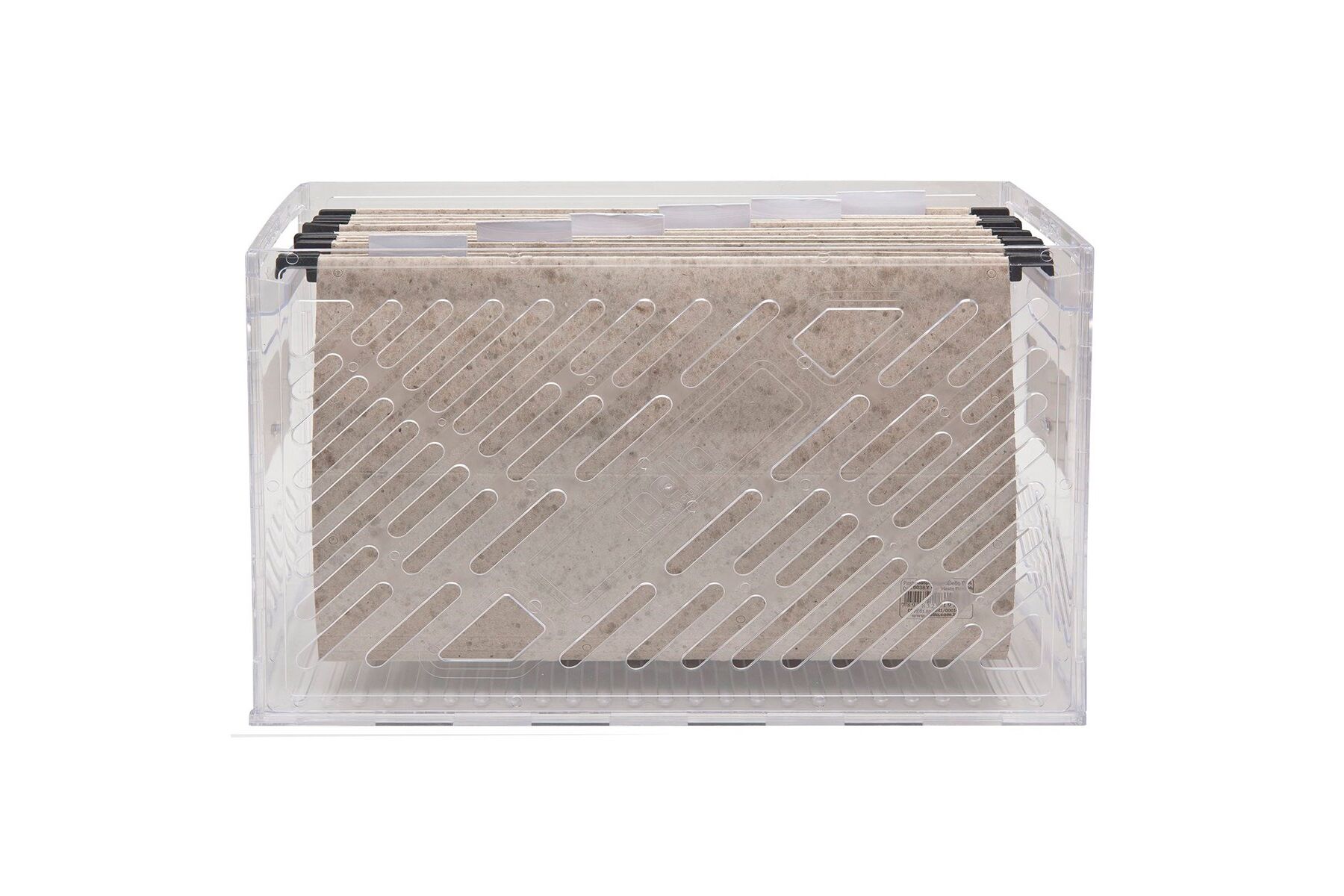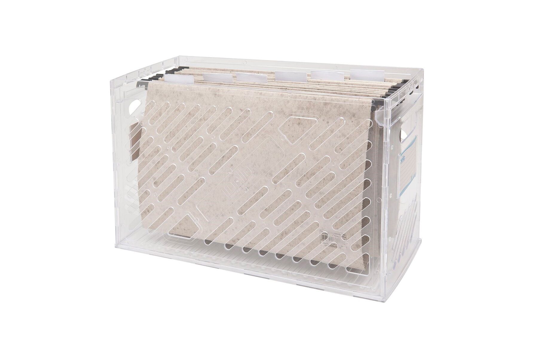 Caixa para arquivo em poliestireno com 6 pastas suspensas ecológicas. Acompanha grampo plástico, visor e etiqueta. Especificação: Peso: 1.243 kg Dimensões: 425 x 145 x 270 mm