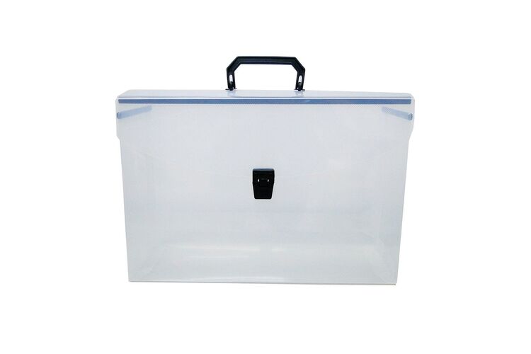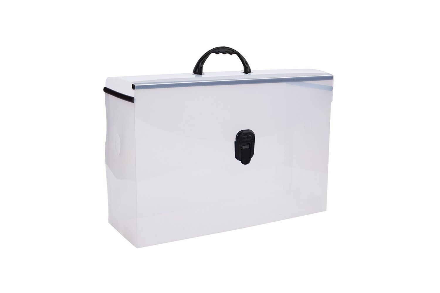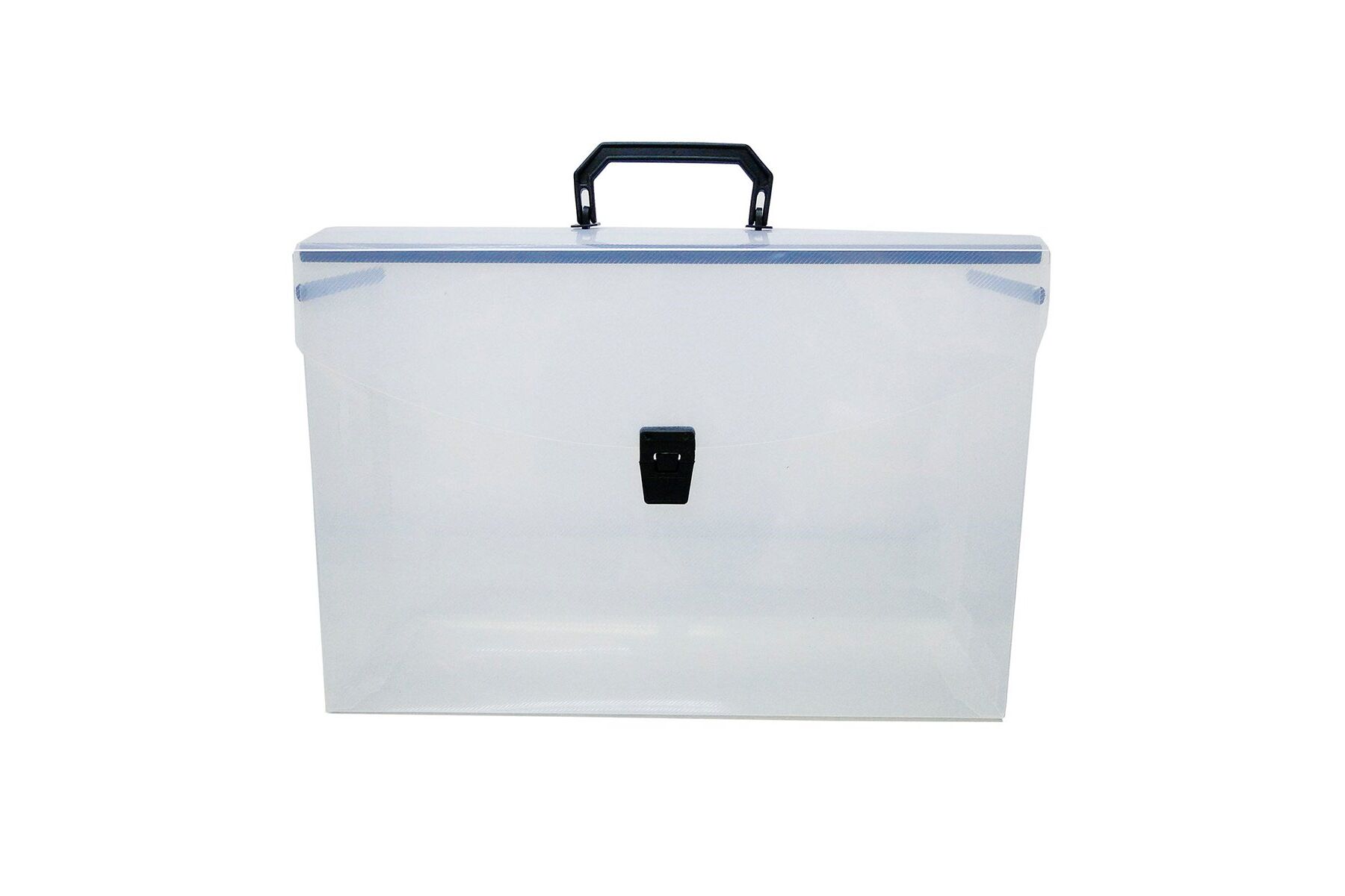 Maleta plástica em polipropileno sem pastas, na cor transparente. Embalagem master c/ uma unidade. Embalagem master cx c/ 5 un. Ref.: 0318 Dimensão do Produto:. 390x140x260