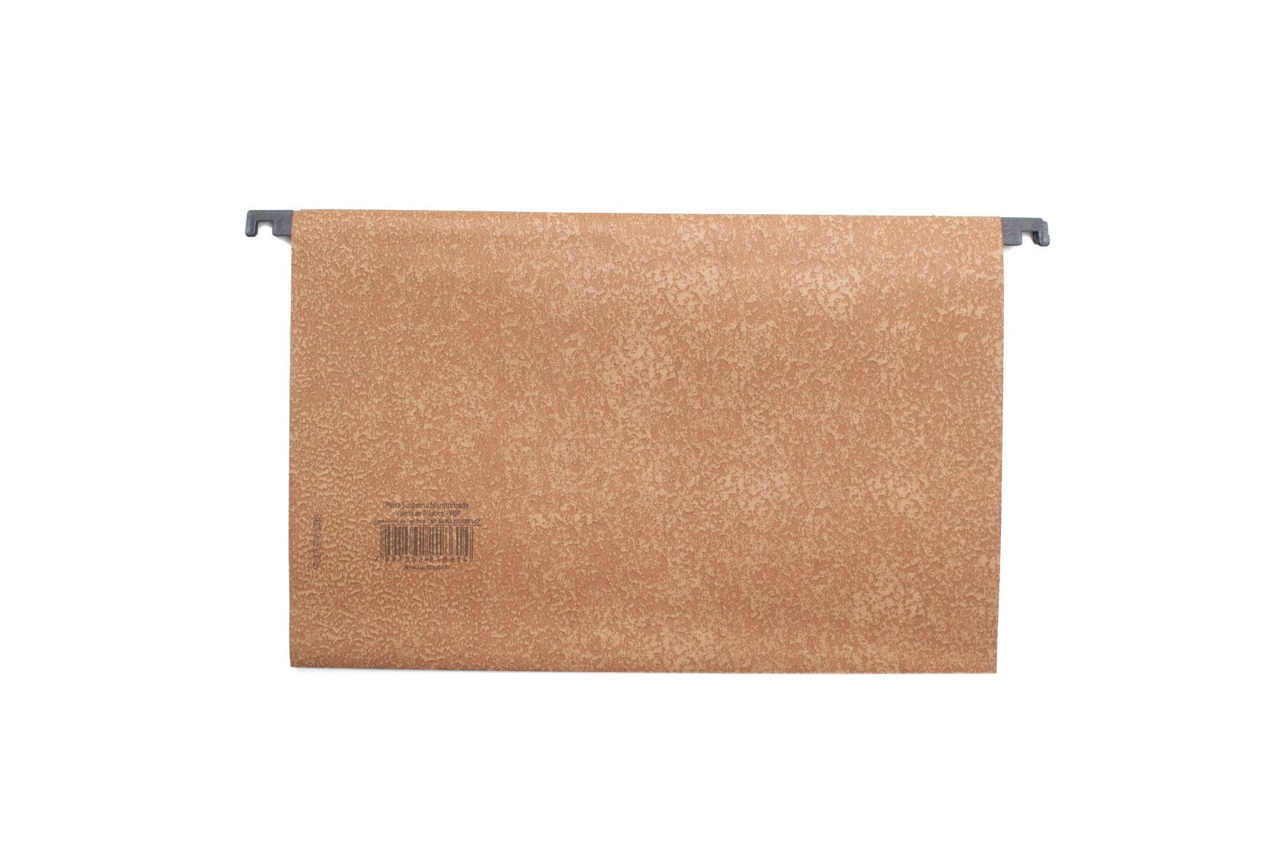 Pasta Suspensa Kraft marmorizada, com varetas plásticas super resistentes e removíveis, o que acrescenta uma segunda função para a pasta, podendo se transformar em uma pasta grampo trilho. Acompanha visor e papeleta para identificação e grampo trilho plástico. Marca: Frama Cor: Kraft pintado Tamanho: 240mmx360mm Gramatura: 160g/m2.
