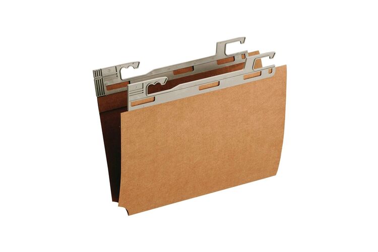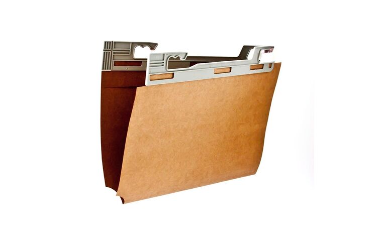 Pasta Suspensa vetro lateral kraft em cartão. Acompanha visor transparente em acrílico, etiqueta branca e grampo plástico. 430x400x160mm. Unidade