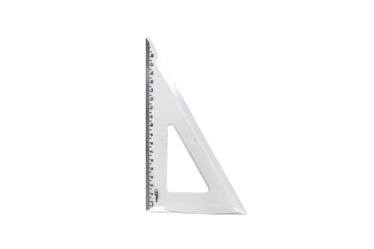 O Esquadro é um instrumento de desenho utilizado em obras civis e que também pode ser usado para fazer linhas retas verticais com precisão. Esquadro com ângulo de 60° graus. Fabricado em poliestireno. Com espessura de 3mm. 1,5 x 12 x 21 cm (A x C x L)