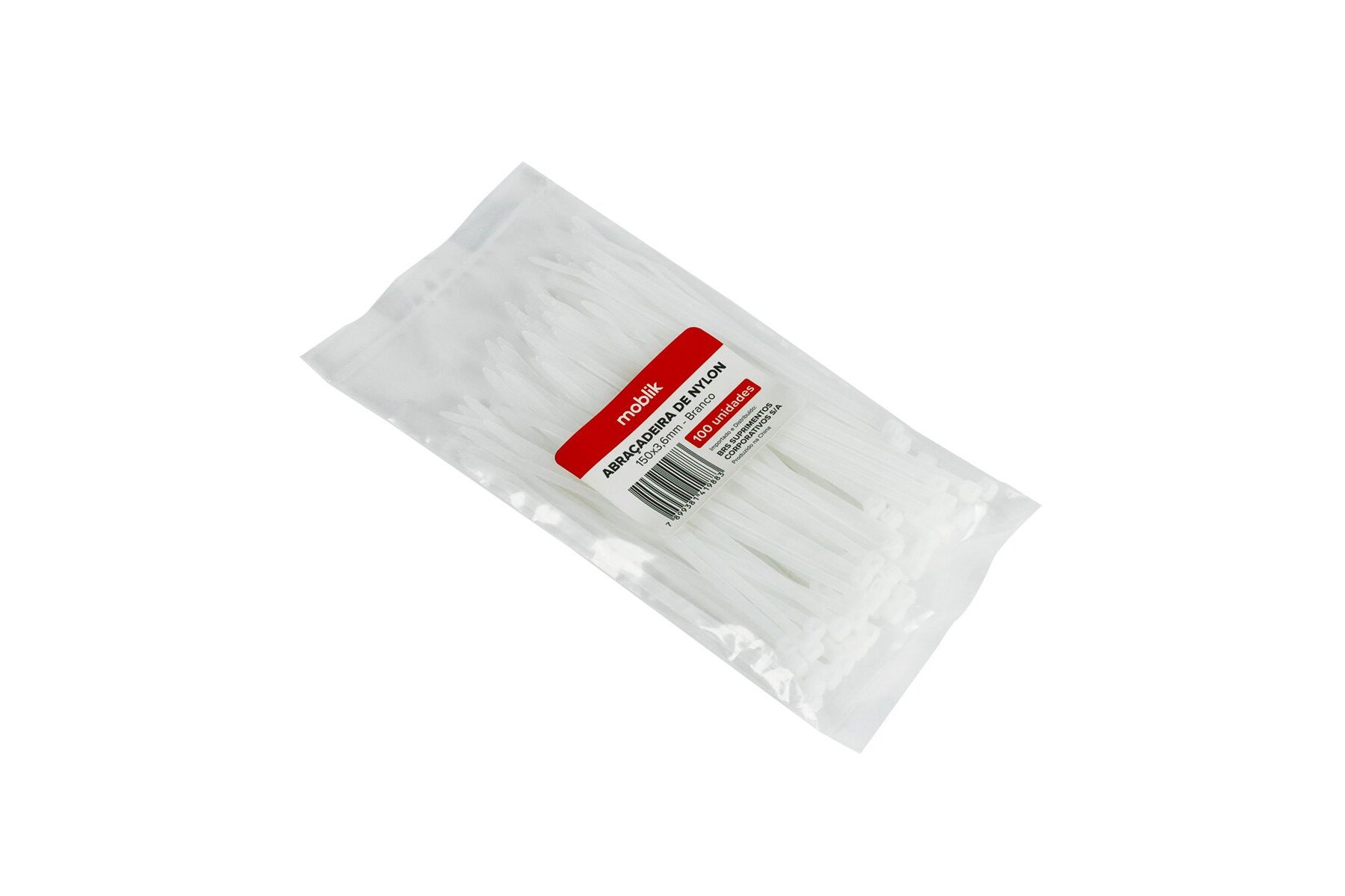 Abraçadeira de Nylon Branco 150 x 3,6 mm 100 unidades Moblik