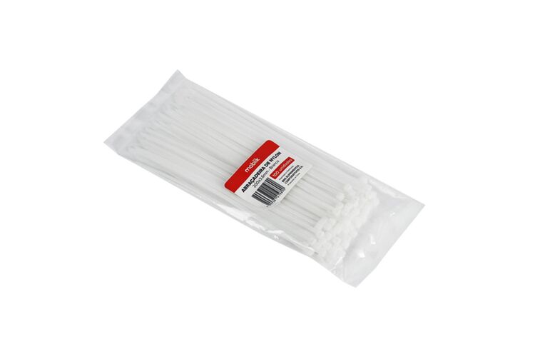 Abraçadeira de Nylon Branco 200 x 3,6 mm 100 unidades Moblik