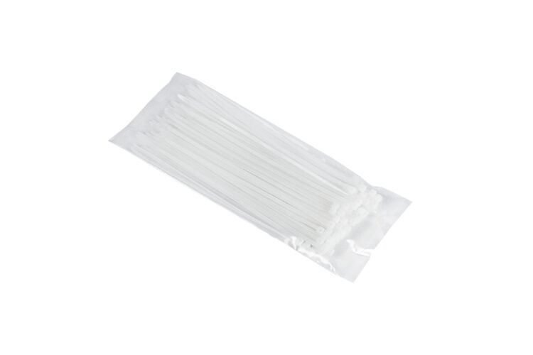 Abraçadeira de Nylon Moblik de alta qualidade na medida 200x3,6mm, cor branco, pacote com 100 unidades.