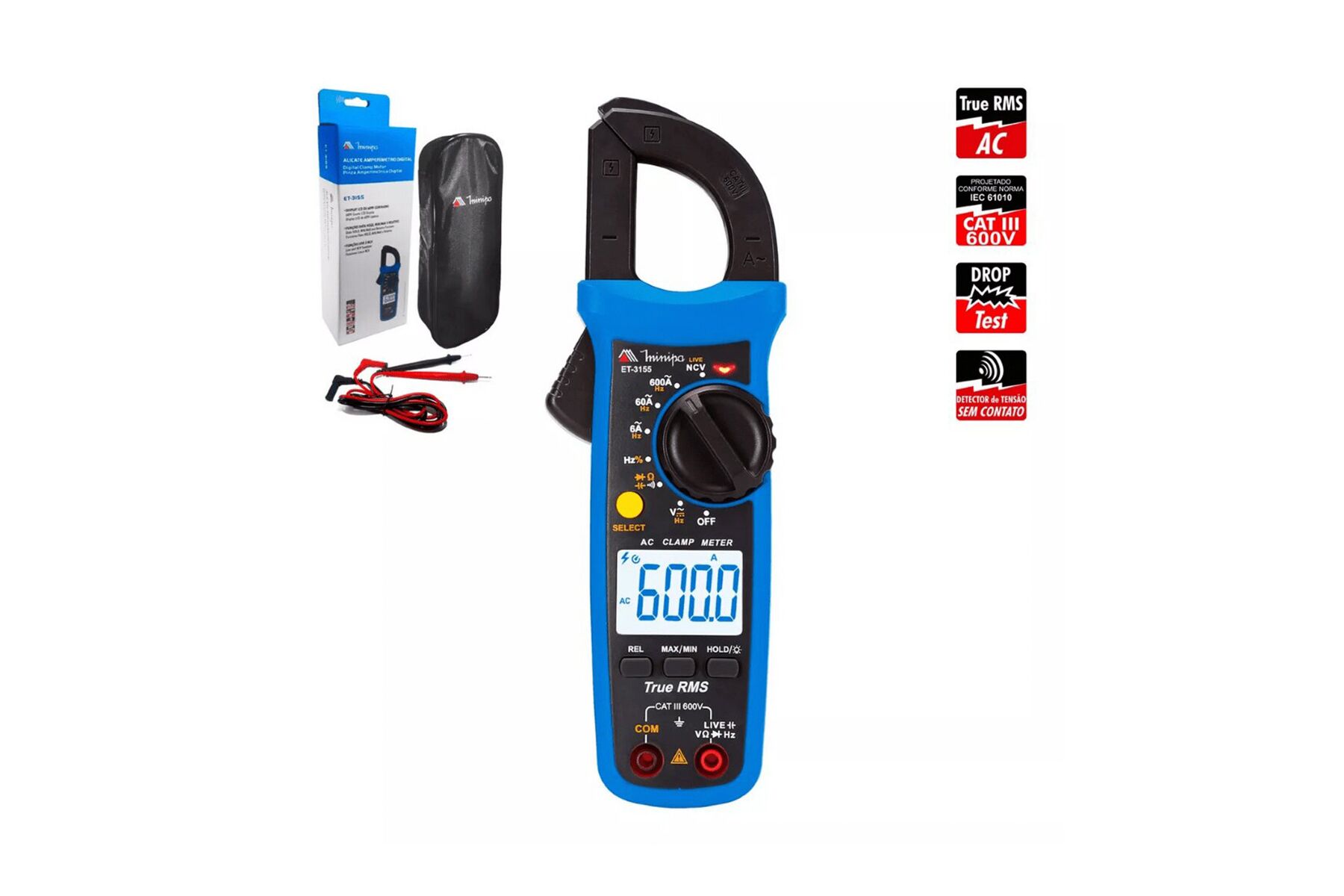 Alicate Amperímetro Digital Minipa ET-3155 Cat III 600V