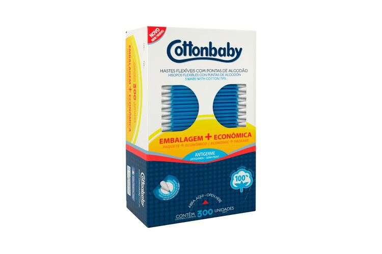 Produzido dentro de um alto padrão tecnológico, Cottonbaby possui hastes flexíveis e inquebráveis. O algodão recebe um tratamento antigerme que o mantém livre de micróbios. Suas pontas não se desprendem nem soltam fiapos quando utilizados corretamente. Cottonbaby é para toda família. É indicado para higiene diária das orelhas, umbigo, olhos, nariz, além dos mais diversos usos.