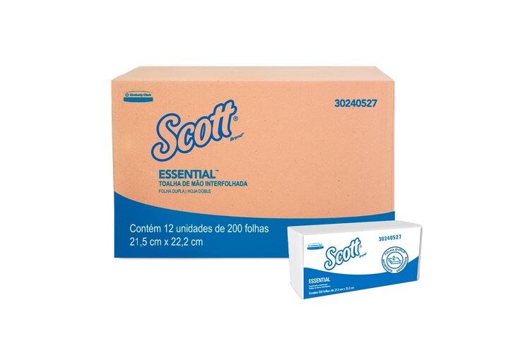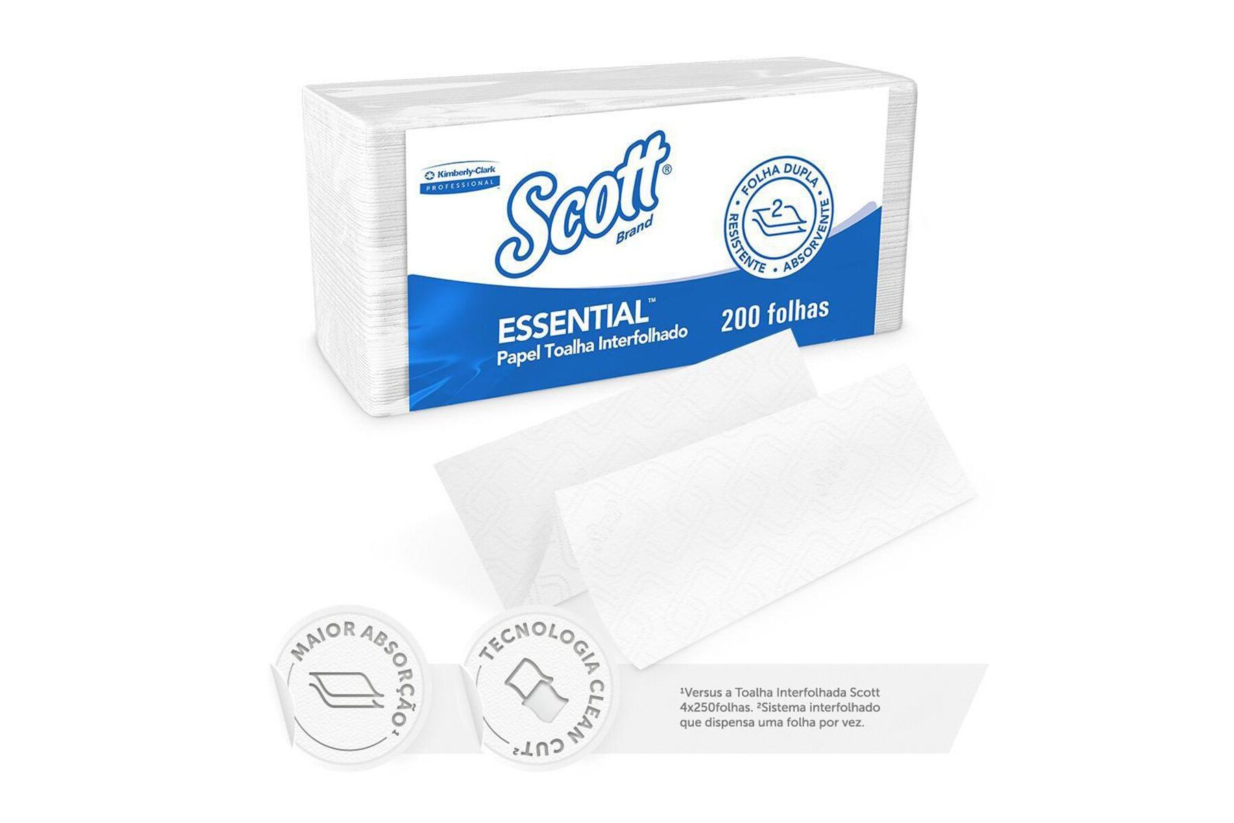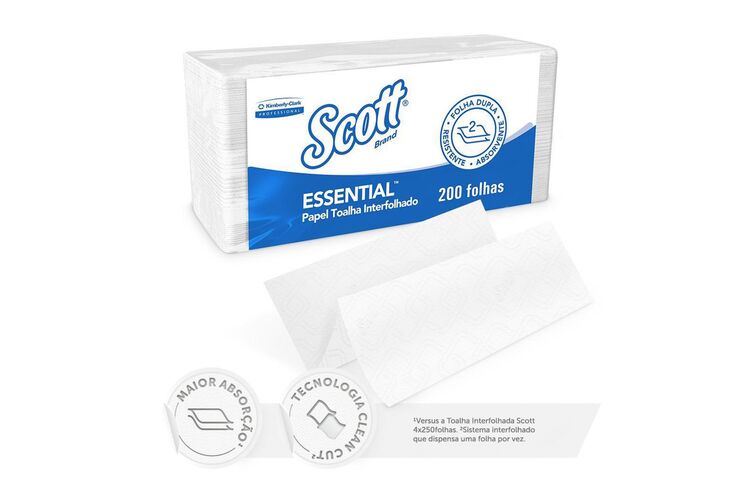 O papel toalha Scott® Essential oferece uma excelente secagem de mãos por ser folha dupla. Conta com o desenho da marca Scott em cada folha, proporcionando uma melhor percepção de marca e qualidade aos clientes. Produto certificado FSC Forest Stewardship Council(Conselho de Manejo Florestal) (FSC C105374). A Toalha Scott® Essential Interfolhada utiliza matérias-primas de origem florestal proveniente de fontesresponsáveis