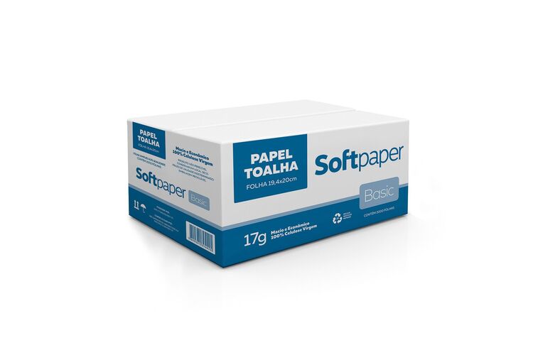 Papel Toalha Interfolhado Folha Simples 17g 2000 folhas | Softpaper Basic