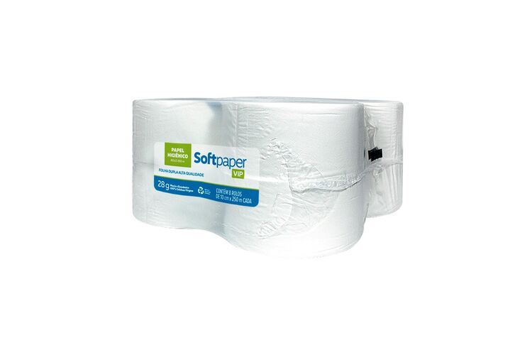 Papel Higiênico Folha Dupla 250 Metros 8 Rolos 28 g | Softpaper Vip