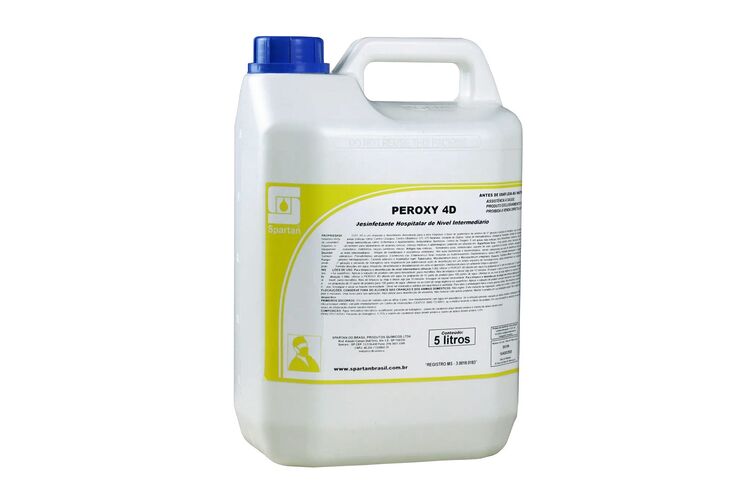 O desinfetante Spartan Peroxy 4D é de nível intermediário e desodorizante hospitalar de alto desempenho.Produto à base de Quaternário de Amônio de 5ª geração e Peróxido de Hidrogênio ativos bactericidas que proporcionam alto desempenho em um amplo espectro de microrganismos e ação bacteriostática de 72 horas. O Peroxy 4D foi especialmente desenvolvido pensando nas dificuldades encontradas na área hospitalar em relação as bactérias super resistentes e surtos ocasionados por elas. Pode ser usado em shoppings, cozinhas industriais, indústrias em geral, etc. O Peroxy 4D alveja e desodoriza qualquer superfície lavável em uma única operação.