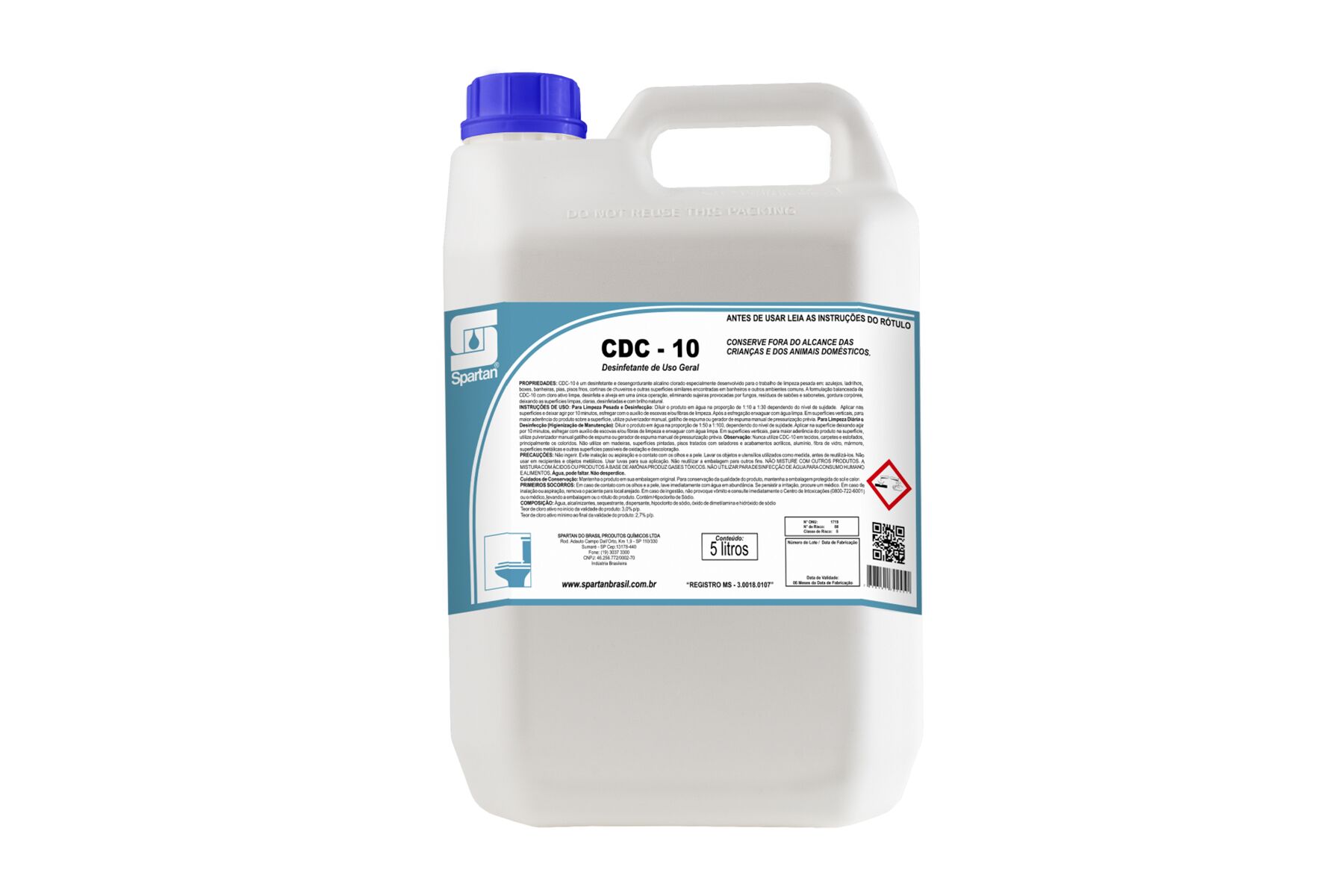 CDC-10 é um desinfetante e limpador desengordurante alcalino clorado, especialmente desenvolvido para o trabalho de limpeza pesada em: azulejos, ladrilhos, boxes, banheiras, pias, pisos frios, cortinas de chuveiros e outras superfícies similares encontradas em banheiros e outros ambientes comuns. A formulação balanceada de CDC-10 com cloro ativo limpa, desinfeta, desengordura e alveja em uma única operação, eliminando sujeiras provocadas por fungos, resíduos de sabões e sabonetes, gordura corpórea, deixando as superfícies limpas, claras, desinfetadas e com brilho natural.