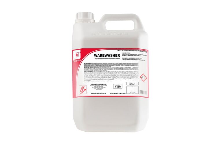 WAREWASHER é um detergente alcalino clorado, de baixíssima espumação, indicado para lavagem mecânica de pratos, talheres, copos de vidro, xícaras, pires, utensílios de cerâmica, porcelana, vidro e metal, bandejas e caixas em máquinas de lavar automáticas. WAREWASHER remove com rapidez e eficiência gorduras animais, vegetais e resíduos de natureza proteica. WAREWASHER proporciona grande economia por ser utilizado em baixa concentração, não agride a máquina de lavar automática.