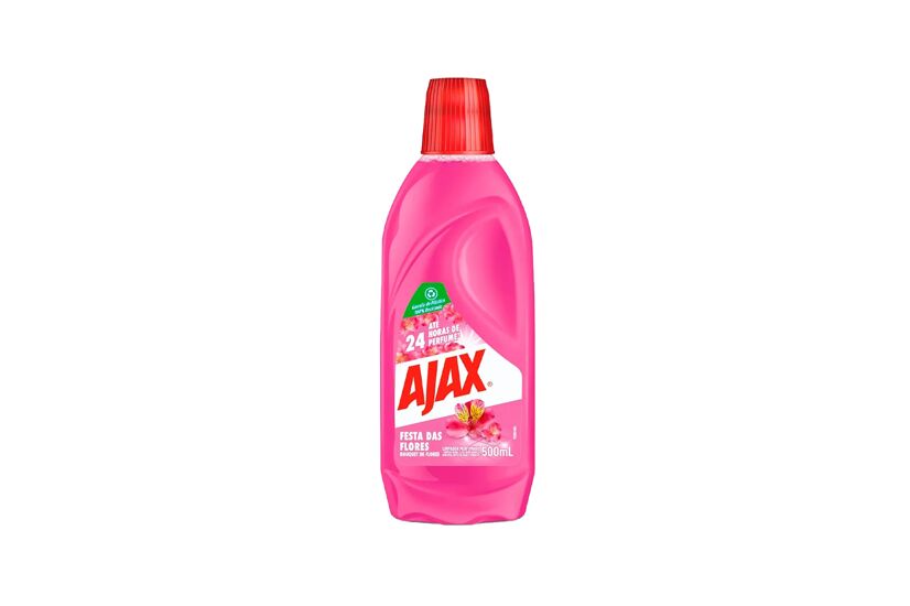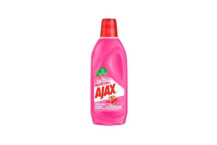 O Ajax Festa das Flores é um limpador multiuso que combina eficiência na limpeza com fragrâncias florais de longa duração. É indicado para pisos, azulejos, vidros, cerâmicas e outras superfícies laváveis, proporcionando um perfume agradável que pode durar até 24 horas. Cuidado da Casa Para limpezas leves, recomenda-se diluir 2 tampas e meia do produto em 5 litros de água, umedecer um pano e aplicá-lo nas superfícies desejadas. Para sujeiras mais difíceis, o produto pode ser utilizado puro com um pano úmido. A embalagem de 500 ml, rende até 30 litros quando diluído conforme as instruções.