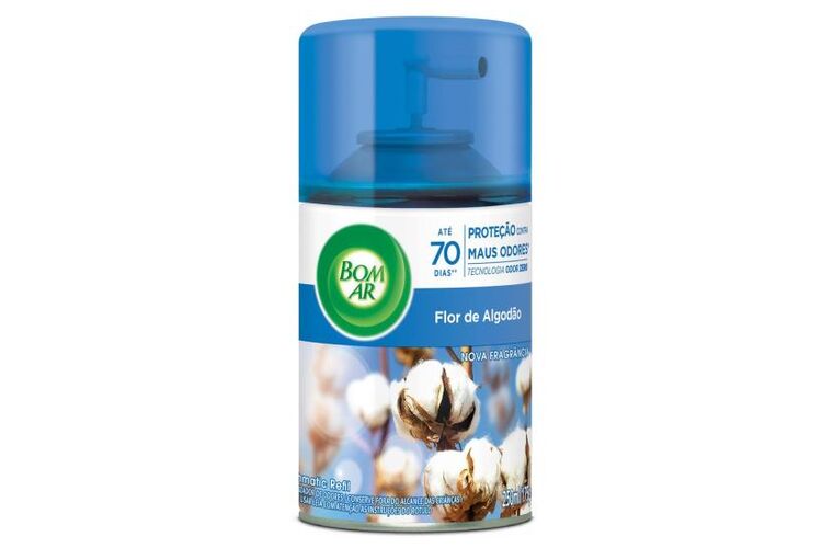 O Aromatizador Bom Ar Fresh Matic Aut. Refil 250ml Flor de Algodão foi especialmente formulado com uma fragrância suave e agradável de rosas e romãs, que envelhece em poucos segundos, perfumando suavemente o ar de sua casa e criando um ambiente romântico e acolhedor. Com sua fórmula exclusiva, elimina rapidamente os odores agressivos dos ambientes. Este produto é um refil para o aparelho Air Wick Freshmatic, que libera automaticamente as fragrâncias em intervalos regulares para manter o ambiente sempre perfumado.