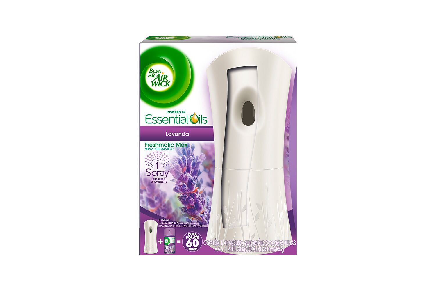 Bom Ar Air Wick Freshmatic Spray Automático (Aparelho + Refil Grátis) Lavanda exala um aroma de personalidade única. Além da deliciosa fragrância com essência de lavanda traz também notas de ervas e um toque de camomila. Como usar