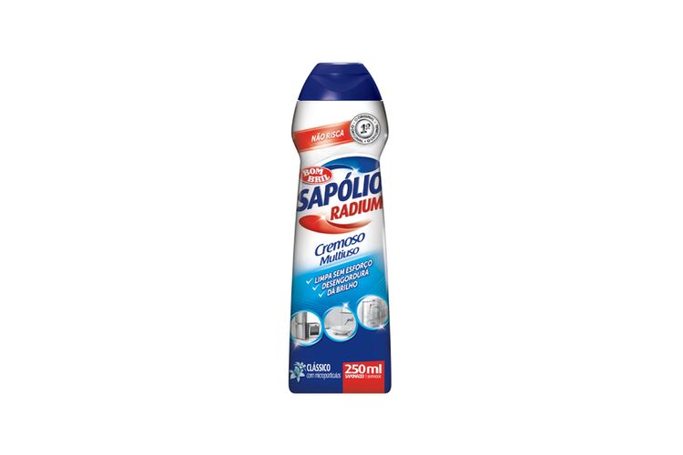 Sapólio Radium Cremoso é um limpador multiuso versátil, ideal para remover manchas e sujeiras difíceis de superfícies como inox, alumínio, cerâmica e porcelana. Em sua versão clássica, possui fórmula em creme, que proporciona uma limpeza profunda sem agredir superfícies delicadas. Características Técnicas: Formato: Creme Volume: 250 ml Ação: Limpador abrasivo suave Aplicação: Ideal para uso em pias, fogões, azulejos, bancadas e louças sanitárias Composição: Contém abrasivos leves, detergentes e fragrância Modo de Uso: Aplicar o creme diretamente na superfície com uma esponja úmida, esfregar suavemente e enxaguar Benefícios: Remove manchas e sujeiras difíceis, deixando um brilho duradouro sem arranhar Precauções: Evitar o uso em superfícies envernizadas ou delicadas