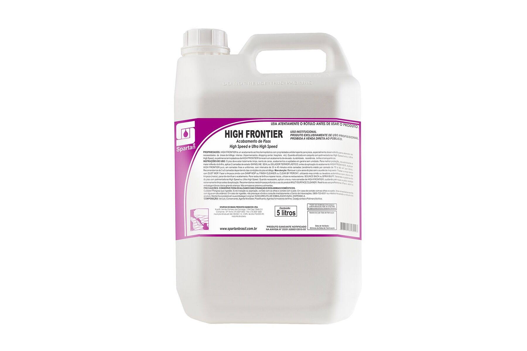 HIGH FRONTIER é um acabamento acrílico termoplástico com propriedades antiderrapante para pisos, especialmente desenvolvido para atender as necessidades de áreas de tráfego intenso (hipermercados, shopping center, hospitais, etc). Quando utilizado em conjunto com polimentadoras High Speed e/ou Ultra High Speed, os polímeros termoplásticos de HIGH FRONTIER fornecem um acabamento de elevada durabilidade, resistência, brilho e transparência. Dados Técnicos: Aparência: Líquido Leitoso Cor: Branco a Creme Odor: Característico pH: 7,50 - 9,50 Peso específico: 1,010 - 1,030 g/cm³ Viscosidade: 1,0 - 10,0 cps Teor de ativos: 20,5 - 22,5 % Registro do Ministério da Saúde: PRODUTO SANEANTE NOTIFICADO NA ANVISA N° 25351.003786/00-96