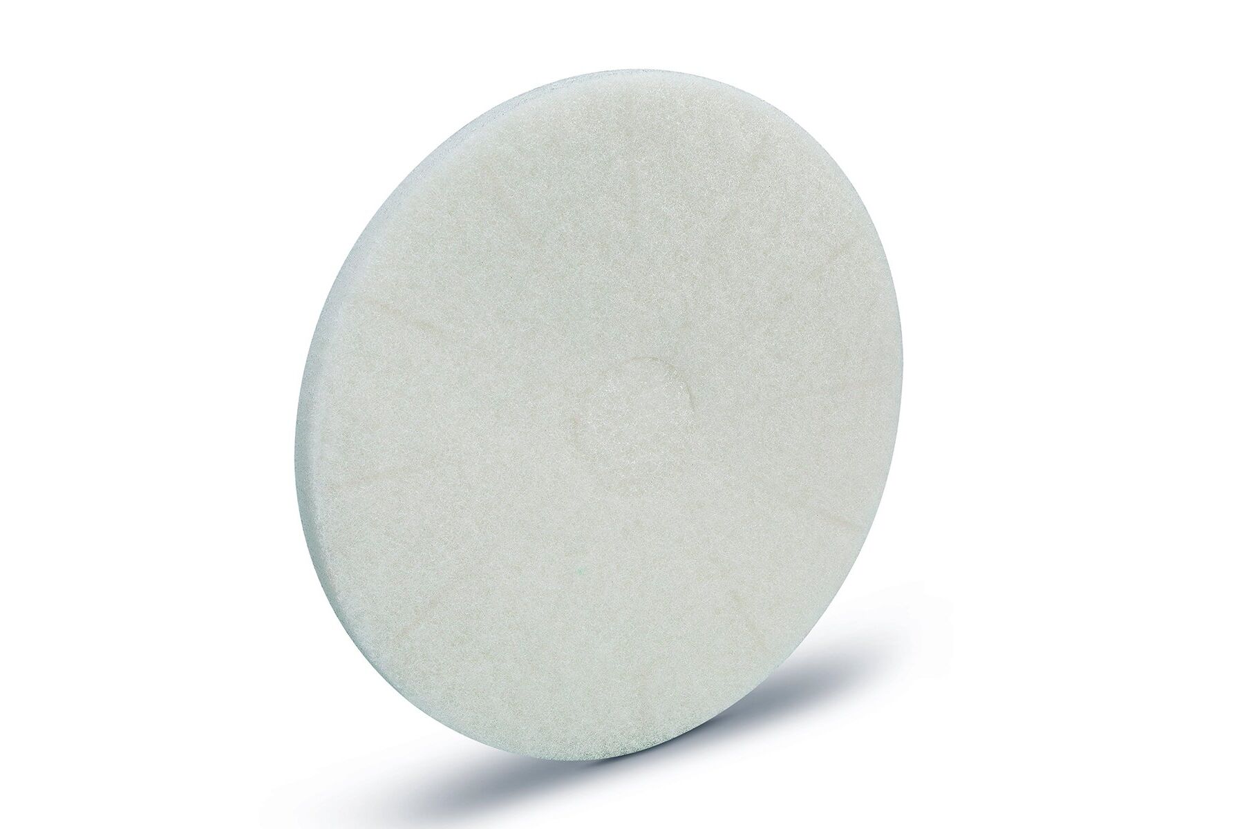 O disco lustrador é um produto não-tecido à base de fibras sintéticas e mineral abrasivo unidos por adesivo sintético resistente a água, detergentes e outros limpadores normalmente usados na manutenção do piso. O disco lustrador branco é usado com ceras a base de carnaúba (macias) e no procedimento de super polimento. A operação de superpolimento é realizada para aumentar o brilho do piso após o polimento. Neste procedimento, proporciona alto brilho sem remoção do acabamento. É também uma excelente opção para limpeza de pisos bastante delicados. Rende até 7.000 m2 (dependendo da porosidade do piso e do tipo de tarefa).