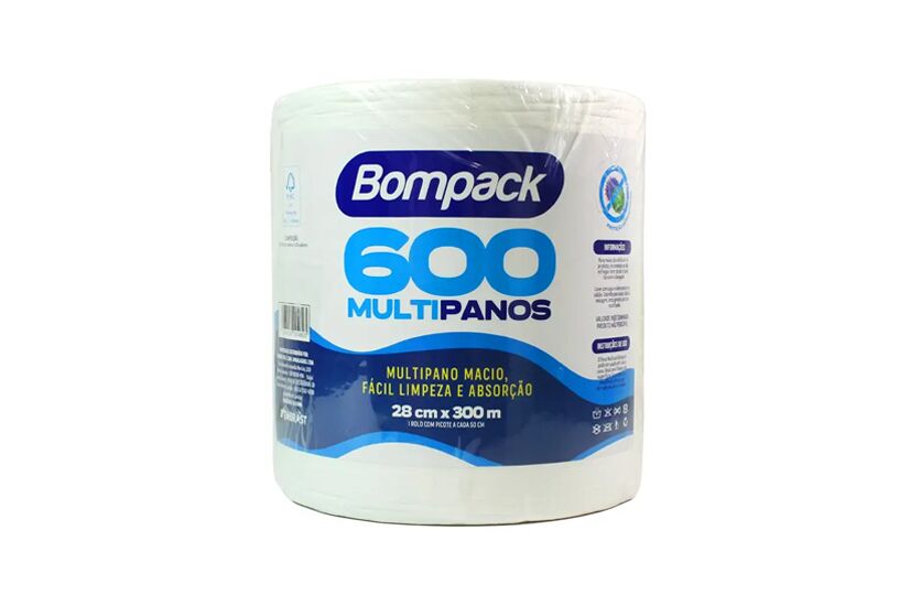 Pano Multiuso 300m Branco c/ 600 Unid 28x50cm - Bompack